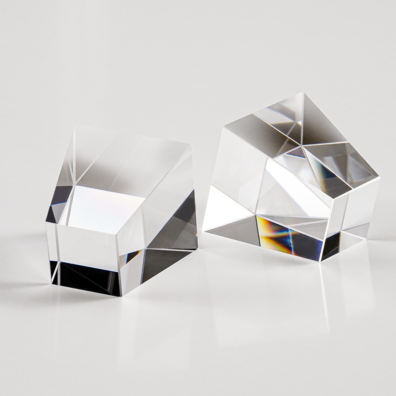 光學(xué)棱鏡是一種透明裝置,光可以在其中傳播,通常由玻璃制作而成。由于端面不是相互平行的,因此會發(fā)生折射(光束方向發(fā)生改變),并且由于材料的色散,折射通常與波長有關(guān)。但是,有時需要用到全反射,有時出射光束方向與波長無關(guān)。棱鏡表面的反射光是需要消除的。當(dāng)光為P偏振時,入射角為布儒斯特角的情況下就能抑制反射光。有時也會采用抗反射涂層來消除反射光。